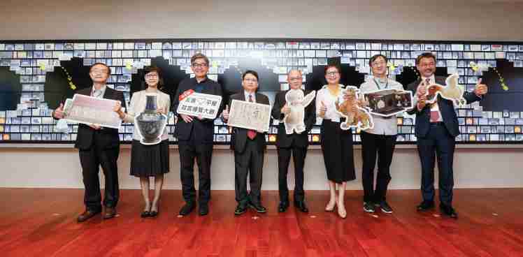 28国际携手创利空间为故宫建置的智慧文物互动导览墙及轮播墙,,,,今日正式启用。。。。(左四:28国际新事业暨投资管理总部副总经理杨本豫、、、右四:故宫博物院院长吴密察、、、、右三:太极影音董事长黄宝云)