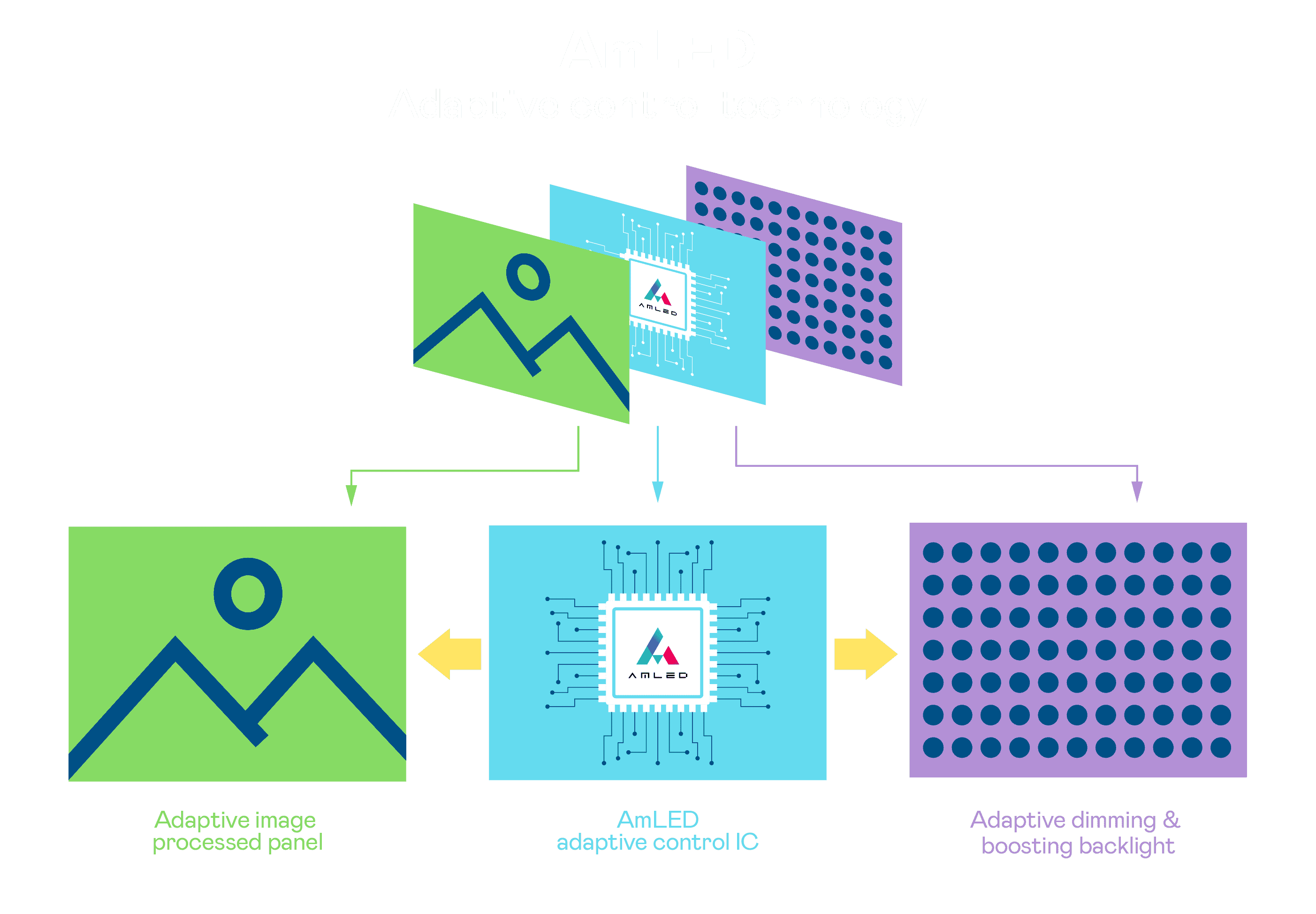 透过动态影像处理和 Mini LED 背光模组的动态对比及峰值亮度调变,,AmLED 显示技术精准细致的局部调光效果达到超过 1,000 nits 的超高亮度表现,,,,亮部更明亮、、、、暗处更深邃,,呈现真实黑色中的亮度以及平滑灰阶,,,,打造出具层次分明的精致光影细节。。