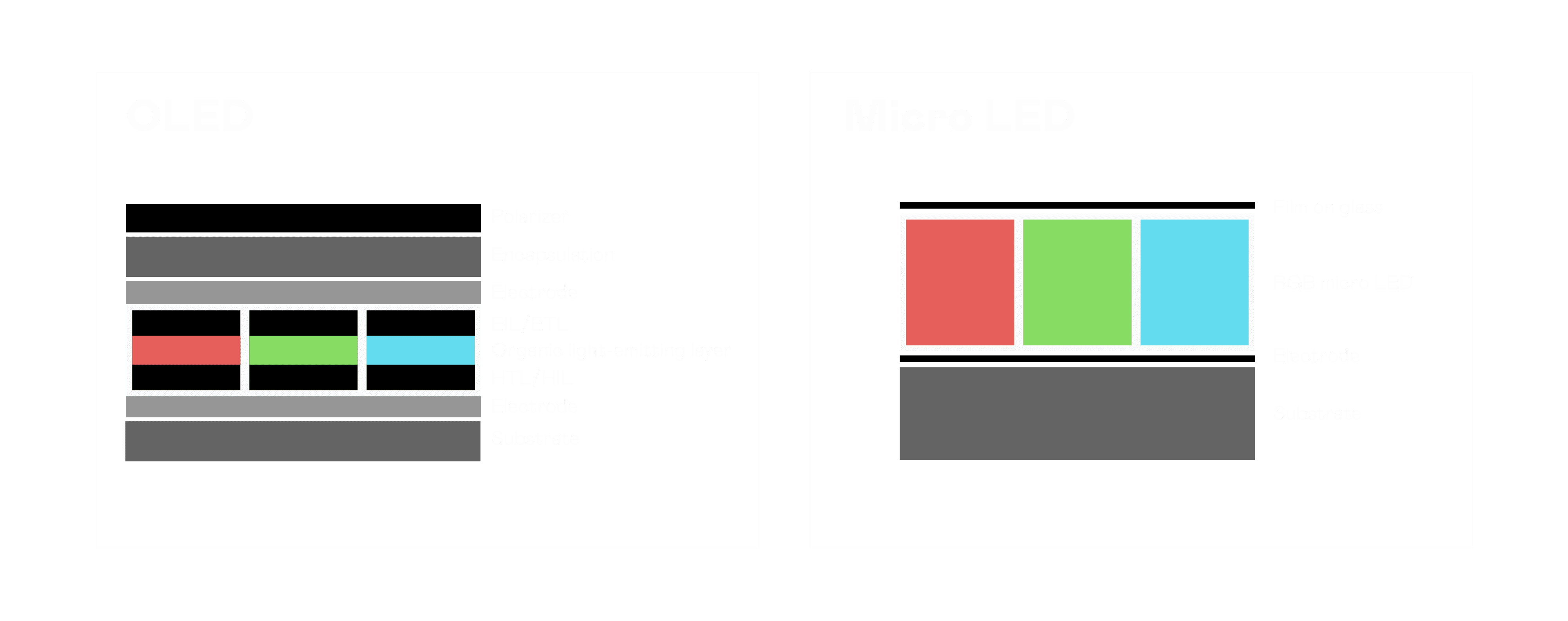 以 LED 做为显示画素,,可让 LED 的发光效率发挥到极致,,从而让显示器具备优异的亮度表现,,,不论是在户外或室内,,,均具备出众的显示效果。。同时,,与使用有机材料的 OLED 相比,,,,LED 具备更稳定、、寿命更长的特性,,,不仅不会有画面烙印问题,,而且更不容易出现故障、、坏点。。。。
